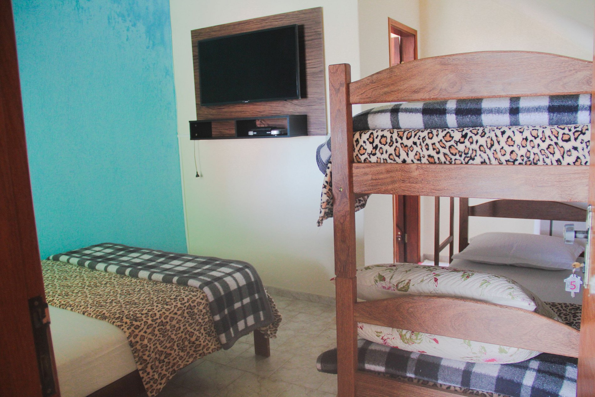 Aqui você encontrará uma Suíte completa para quatro pessoas com uma cama de casal e um beliche, Smart TV 40", geladeira duplex Frost Free, ventilador de teto, banheiro privativo com chuveiro eletrônico quente, sinal Wi-fi.